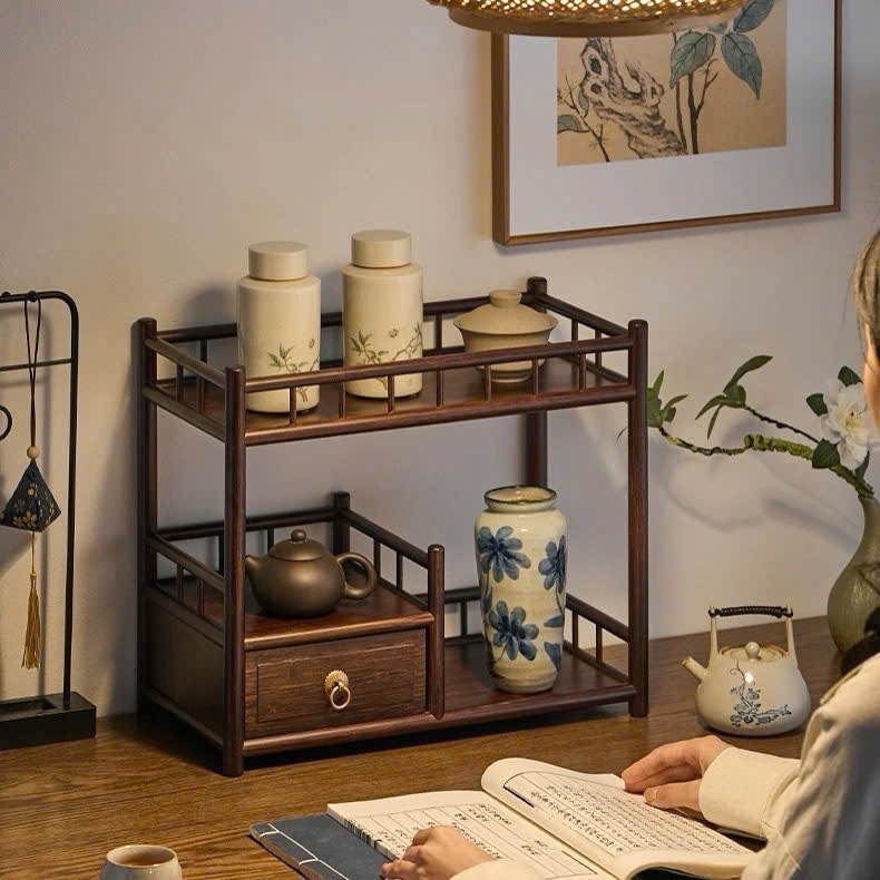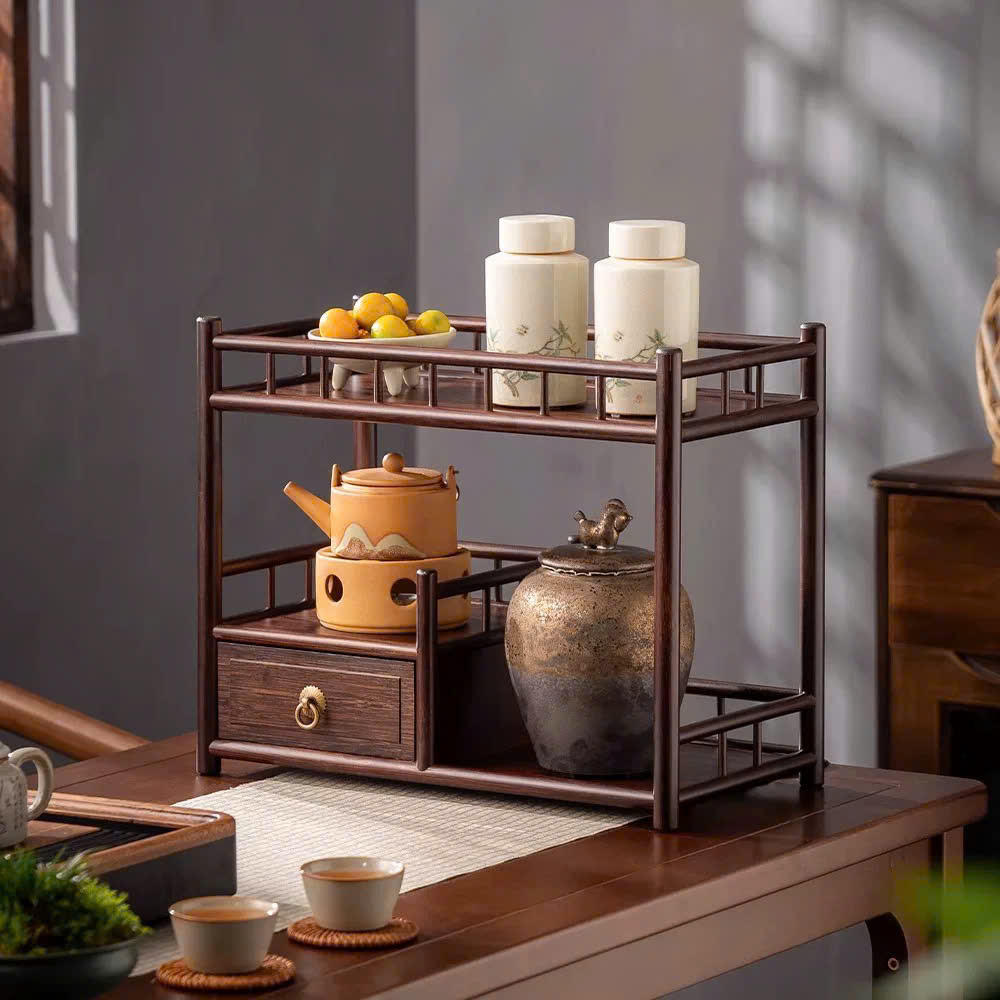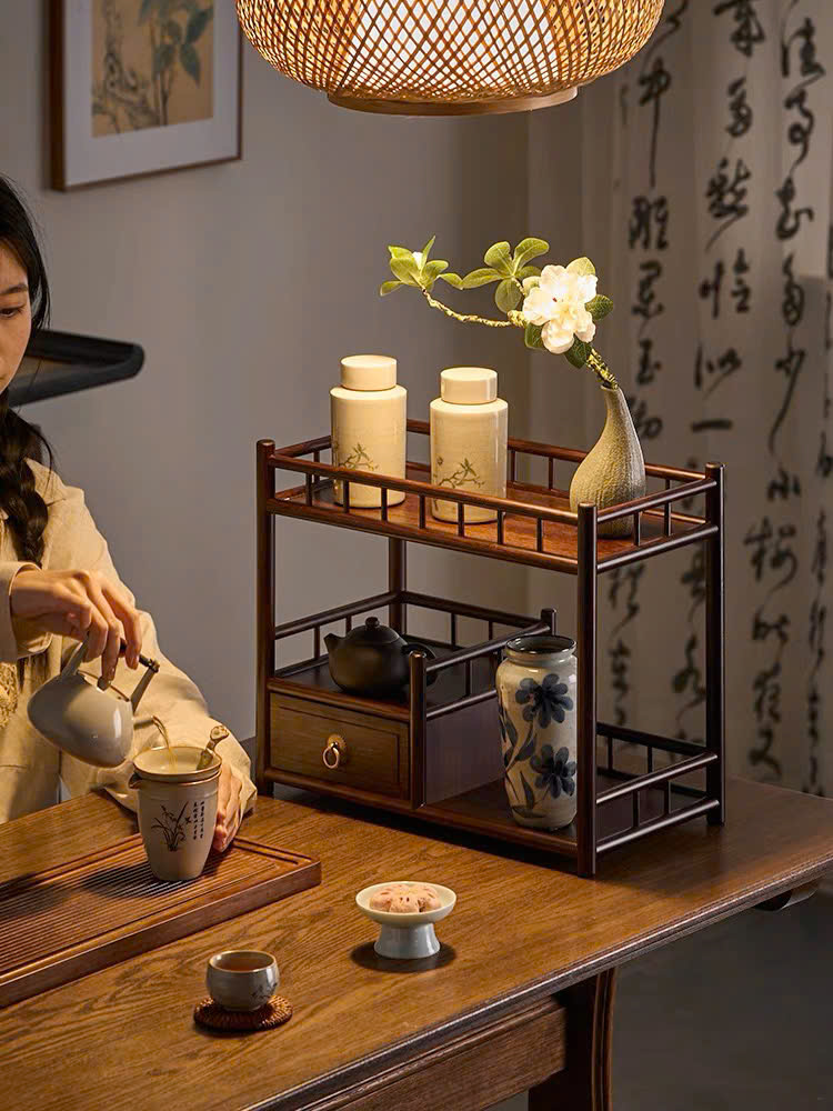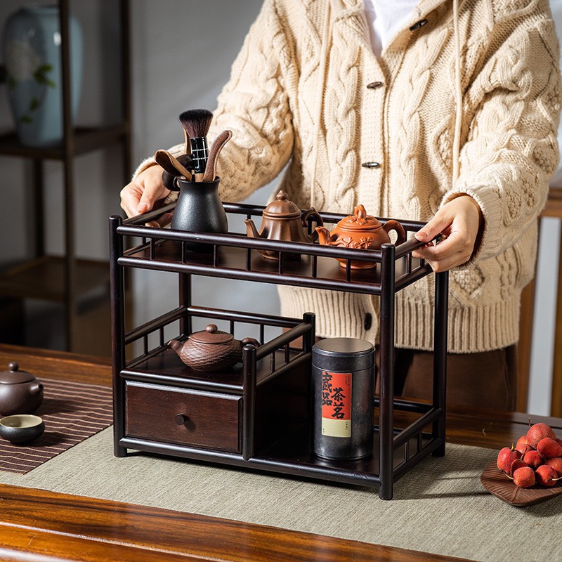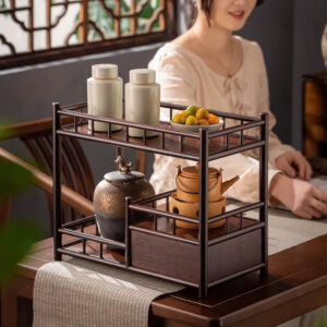 – Sản phẩm phân chia 3 tầng có ngăn kéo, để ấm trà, chén và các phụ kiện trong trà đạo.